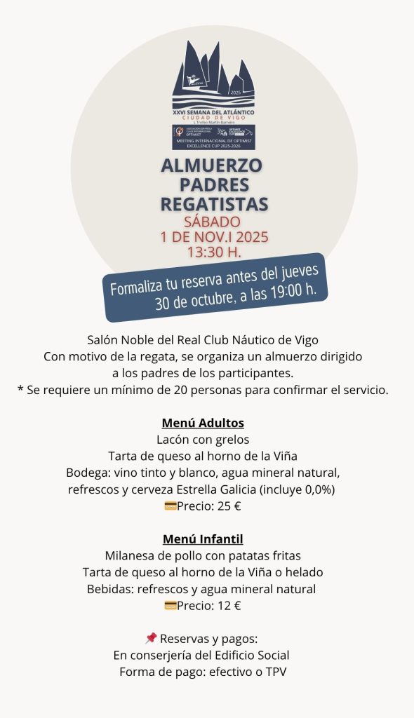 Con motivo de la regata, se organiza un almuerzo dirigido a los padres de los participantes.