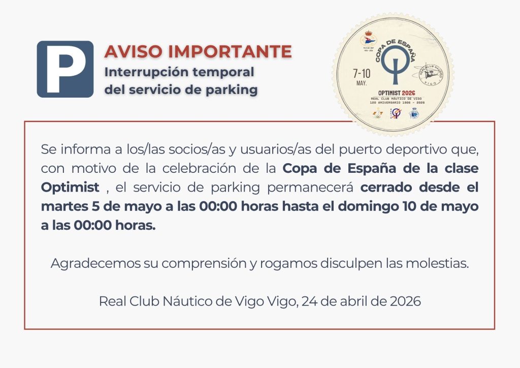 AVISO IMPORTANTE: SUSPENSIÓN DEL SERV. DE PARKING (5-10 may./26)