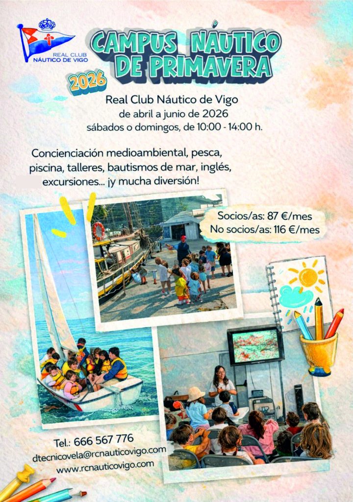 El Real Club Náutico de Vigo lanza su Campus Náutico de Primavera, un programa para niños y niñas con actividades náuticas, piscina, talleres, excursiones y educación ambiental. Se desarrolla de abril a junio de 2026, los sábados o domingos de 10:00 a 14:00 h.